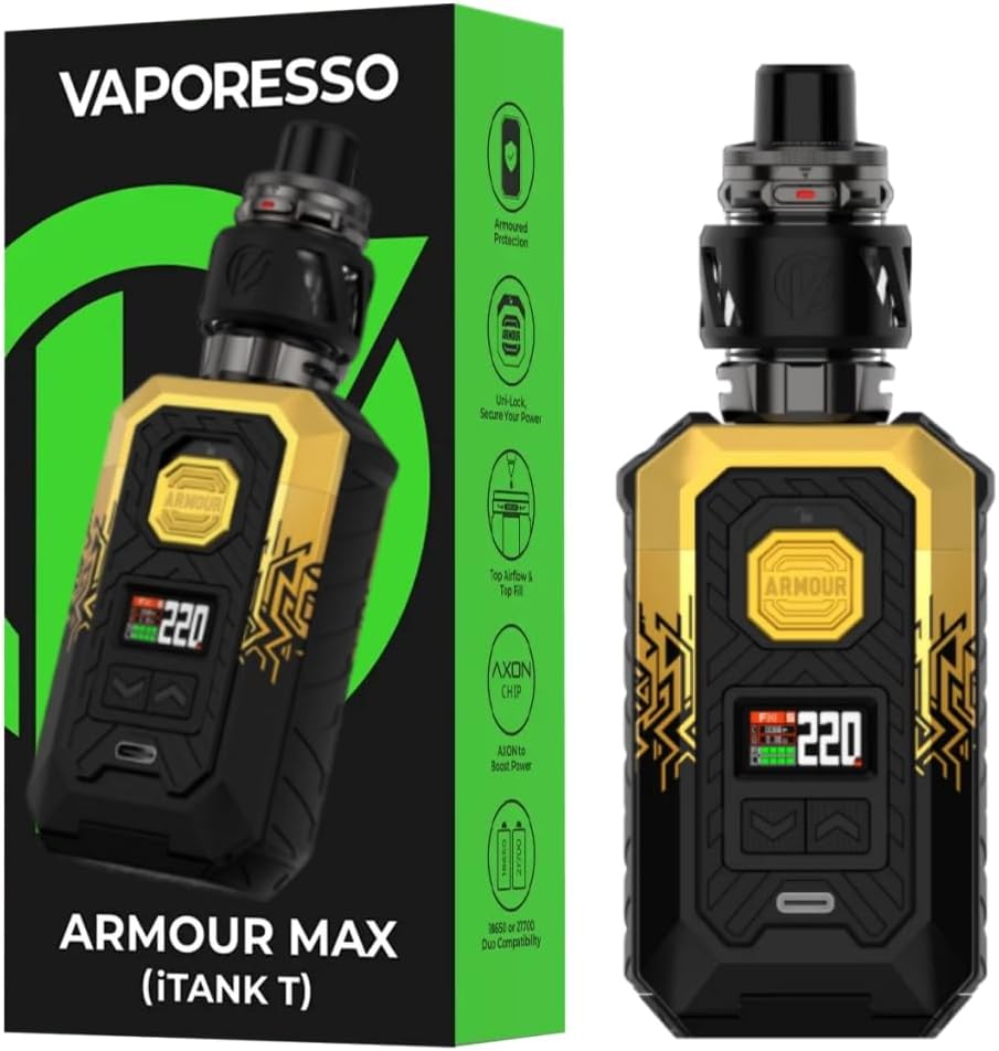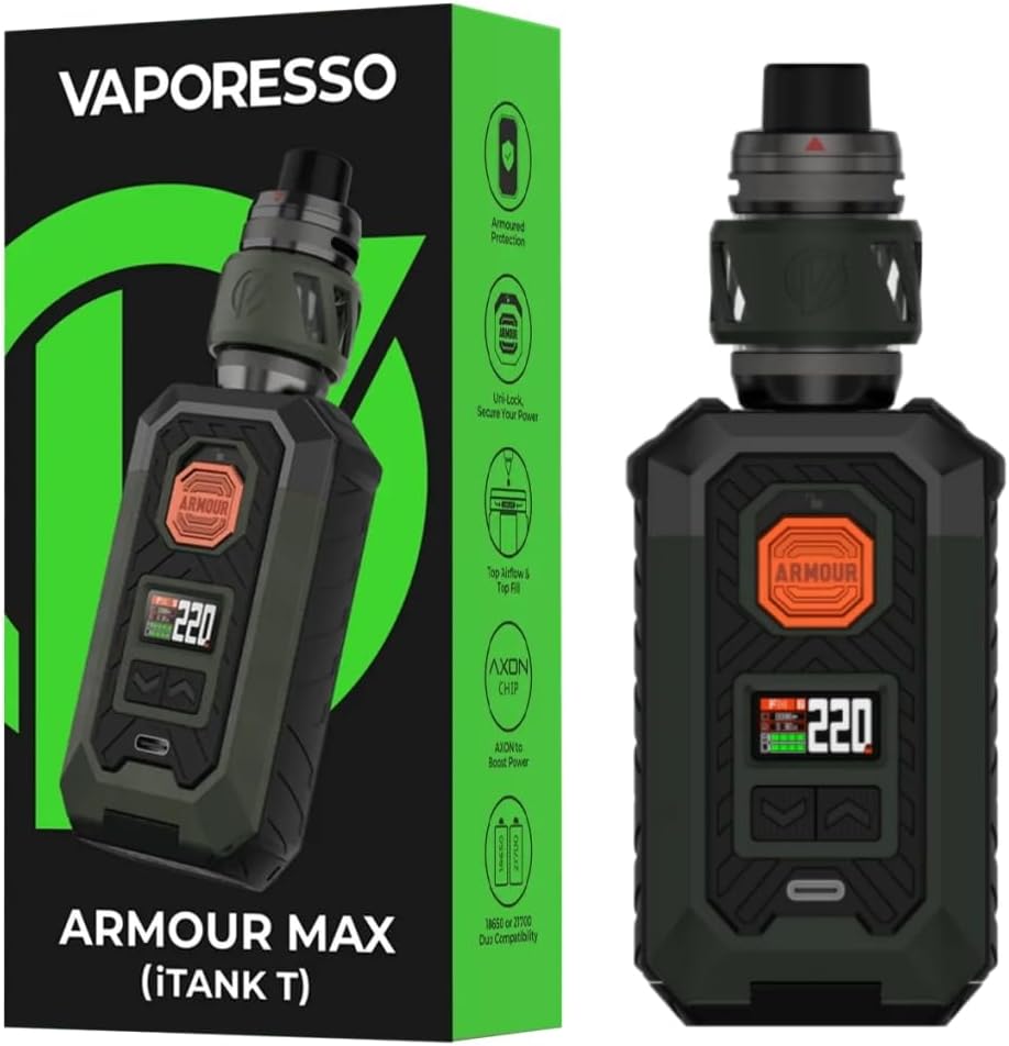 - Vaporesso ARMOUR MAX Kit[ iTank T Edition ] 220W Armour Max Mod with 6 ml Top Tilling itank T Atomizer, Support GTI Coil (0.2Ω/0.4Ω), Battery not include, no nicotine (ARMOUR MAX Kit(itank T) À propos de cet articleTop Airflow, réglage précis:L'iTank T intègre un système d'écoulementd'air par le haut à échelle précise, vous permettant de régler le fluxd'air avec exactitude. Cette…