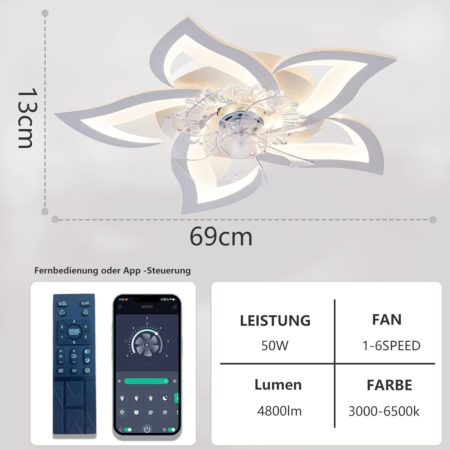 Conception multifonctionnelle Le plafonnier avec ventilateur est la combinaison parfaite entre éclairage et ventilateur. Avec télécommande, réglage de la température de couleur, réglage de la vitesse du vent à 6 vitesses, fonction d’inversion hivernale et minuterie.